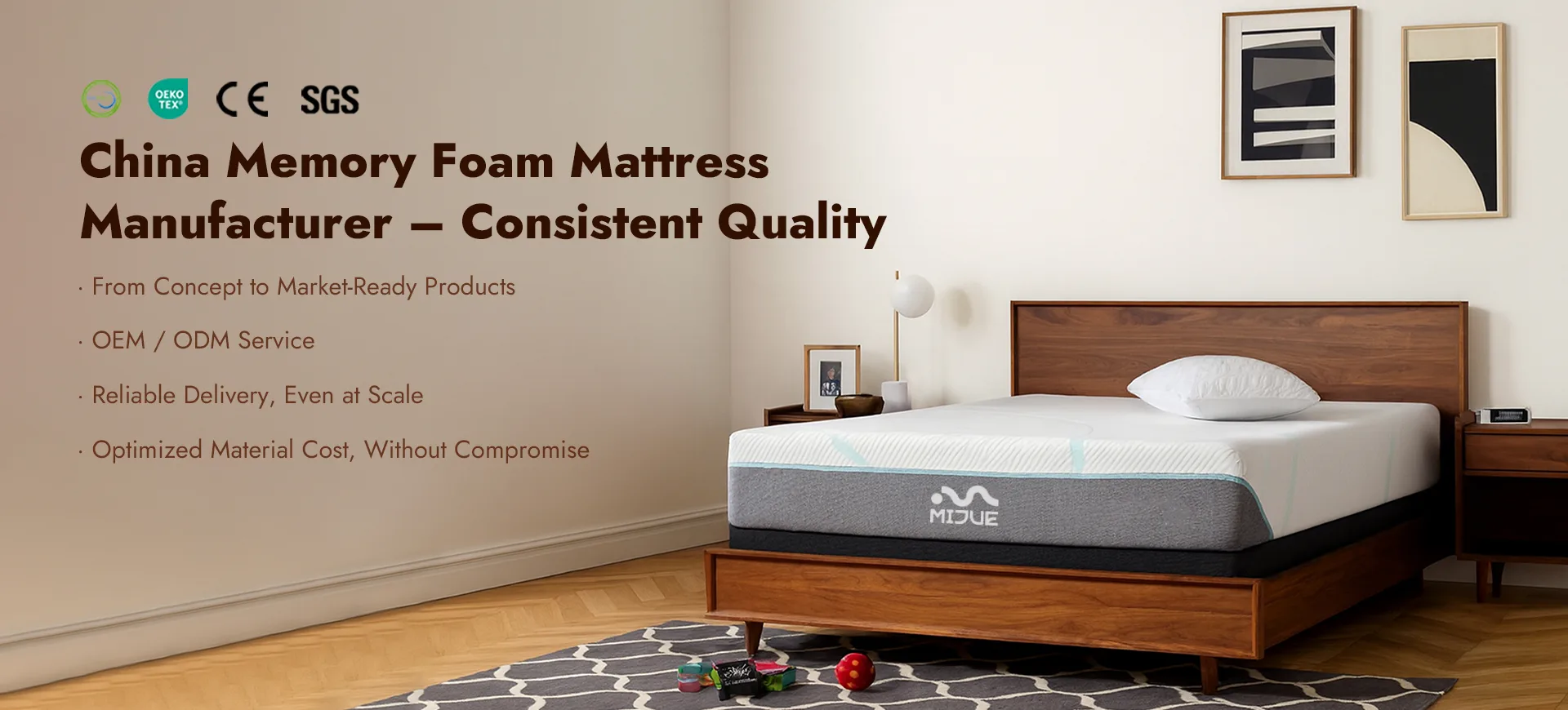 MIJUE provides custom foam mattress solutions for hotels, apartments, retailers, wholesalers and project buyers. OEM & ODM support with custom sizes, firmness, structure and packaging options.Backed by strict QC, stable production, and certifications such as CertiPUR-US and OEKO-TEX, we deliver consistent quality for global markets.